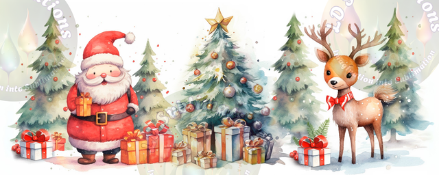 Bring festive cheer to your hot drinks with our Santa & Reindeer Christmas Mug. This joyful design shows Santa and his reindeer friend beside decorated trees and wrapped gifts, creating a cosy seasonal scene.